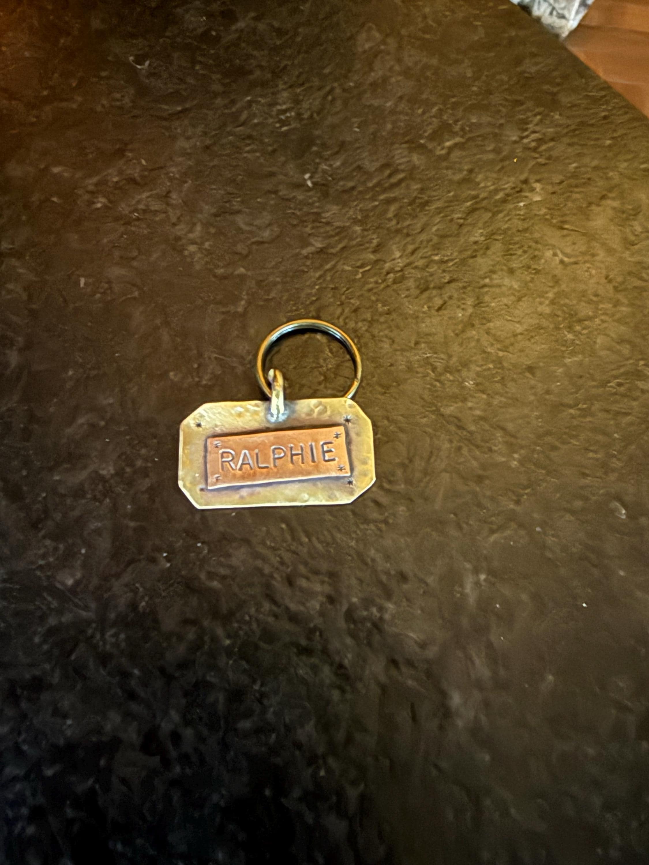 A 1.2" x 0.6" (3cm x 1,5cm) bronze tag with copper name plate !